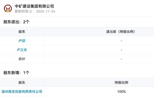 中矿总公司得知控告内容后,或许是犯案心虚,为了逃避法律责任,一夜之间将注册资本金高达3亿元的中矿总公司法定代表人由卢立炎变更为卢杭;2025年11月24日,将股东卢立炎、卢迎的100%股份全部转让给温州鼎发控股有限责任公司的股份,将财务负责人、执行董事兼总经理的卢立炎变更为林发。温州鼎发控股有限责任公司的法定代表人是卢立整,占股份99%,卢杭占股份1%。卢立炎与卢立整系亲兄弟,由此可见,实际控制人仍然是卢立炎家族。