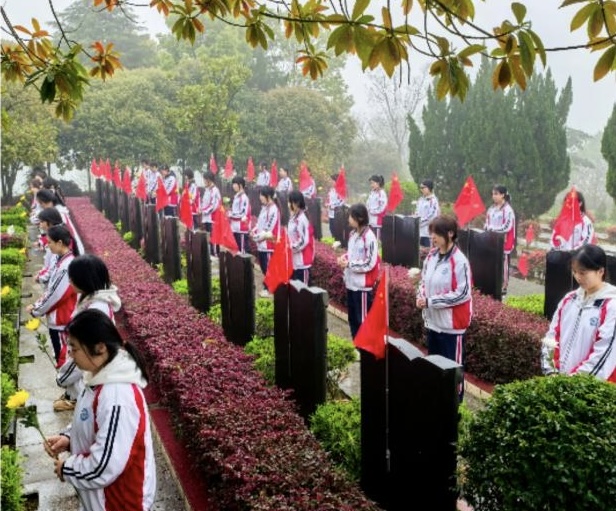 “铭记英烈事迹,传承英烈精神,胸怀家国情怀,努力学习进取,争做时代新人,守护盛世中华!”在团委林老师的领誓下,全体师生高举右拳、庄严宣誓。随后,全体师生默哀三分钟,向为革命事业献出宝贵生命的革命英烈致以最崇高的敬意。