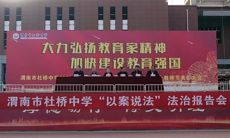 (王瑞利)“春风拂面百花开、校园普法育英才”。为了全面提升学生的法律、安全意识,4月10日,杜桥中学成功举办了一场“以案说法”校园普法法治报告会,临渭区检察院、疾控中心、交警等部门携手,同进校园、共播法律知识常识,为杜中师生送上了一堂别开生面的普法盛宴,校领导及高一、高二年级两千多名师生参加并听取了报告。