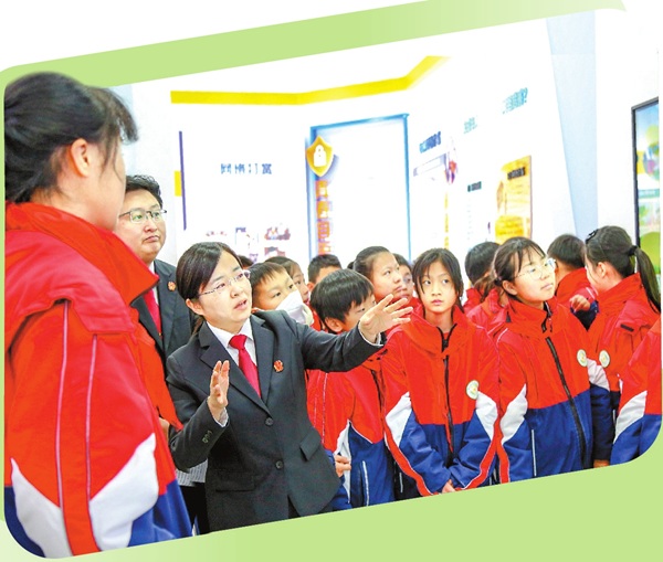图③:易秀娟带孩子们参观“未成年人法治教育基地”。
