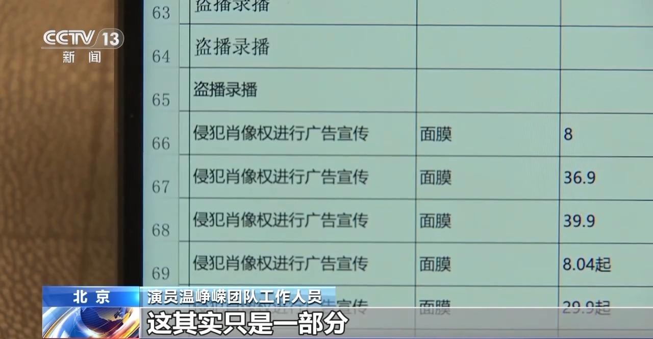 演员温峥嵘团队工作人员:他们喜欢在凌晨三四点大家都在休息的时候,去打时间差发这个东西。送达了律师函,包括他们的侵权行为、产品、所对应的公司主体,这其实只是一部分,在早前已经陆陆续续处理了很大一批。