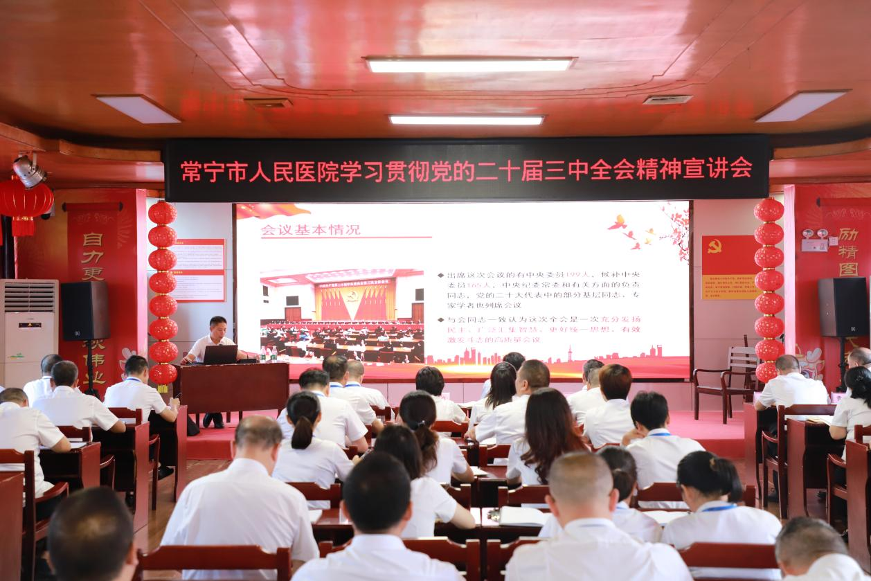 9月27日,常宁市人民医院召开学习贯彻党的二十届三中全会精神宣讲会。会议邀请了中共常宁市委党校副校长蒋顺良做专题辅导,院党委书记尹雨佳主持会议。