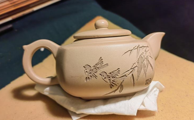 汪成琼会长现场为马来西亚苏丹演示紫砂陶刻作品