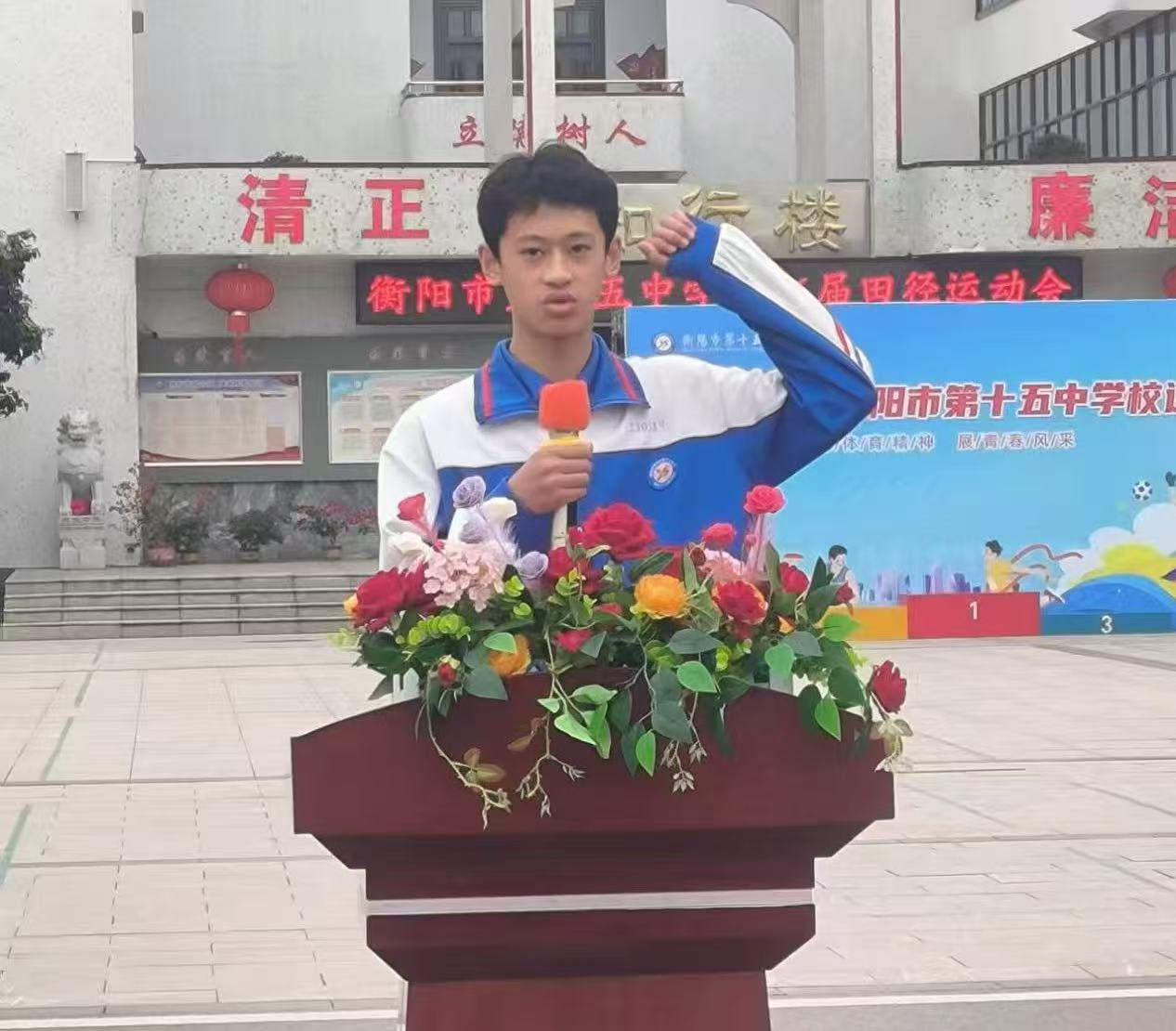 本届运动会的温情,不仅在于运动员的拼搏,更在于声音的力量。播音站同学们通过广播,用真挚的加油稿为选手们注入信心;而跑道旁的同学们则挥舞班旗、齐声呐喊:“加油!冲过去!”“坚持住,我们陪你!”广播声与呐喊声交织,汇成一股温暖的声浪,推动着每一位健儿奋勇向前。这是属于十五中的团结之声,更是青春中最动人的和鸣。