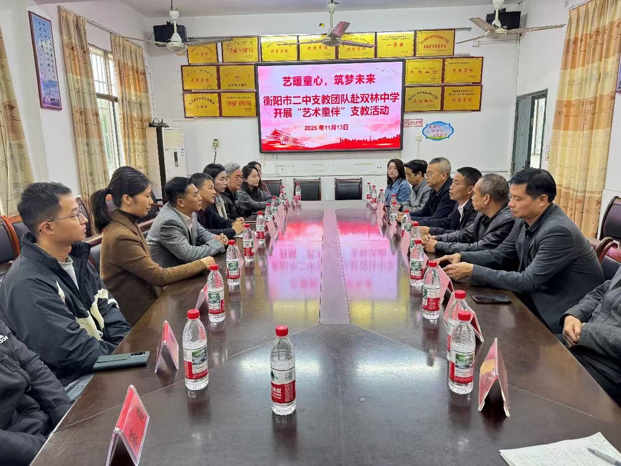 见面会在简洁温馨的会议室召开。双林中学副校长颜发乃对衡阳市二中支教团队的到来表示热烈欢迎,并全面介绍了该校体育艺术教育的丰硕成果,同时坦诚分享了当前发展面临的师资困境。随后,彭剑锋委员作汇报,回顾了两校过往合作的深厚渊源与亮眼成绩,并从四大维度明确了后续帮扶重点:筑牢艺术素养教育特色阵地、强化体艺教师专业成长赋能、丰富留守儿童艺术关爱活动、健全长效合作沟通机制,为支教工作划定了清晰方向。