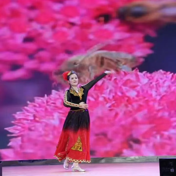 社艺节展演环节精彩登场。首先,特邀嘉宾 —— 新疆鄯善县鲁克沁镇第二中学的音乐老师、鲁克沁木卡姆传承人谢日排姆苏力坦老师,为现场师生带来独舞《且比耶特木卡姆・朱拉》。她身着绣满民族纹样的服饰,旋转时裙摆如绽放的花朵,每一个动作都饱含对木卡姆文化的热爱,让观众沉浸式领略了民族艺术的魅力,掌声经久不息。