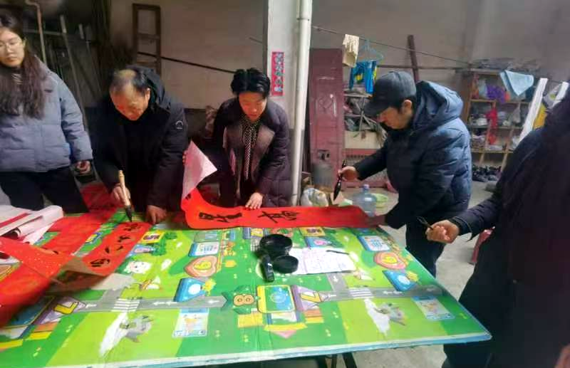 书法家李新基在为乡亲们义务写春联