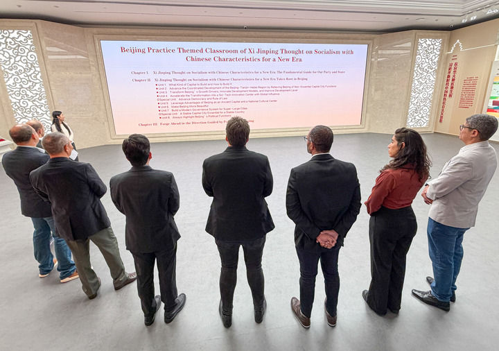 巴西交流团在习近平新时代中国特色社会主义思想京华实践主题教室上课(10月17日摄)。新华社记者 陈钟昊 摄