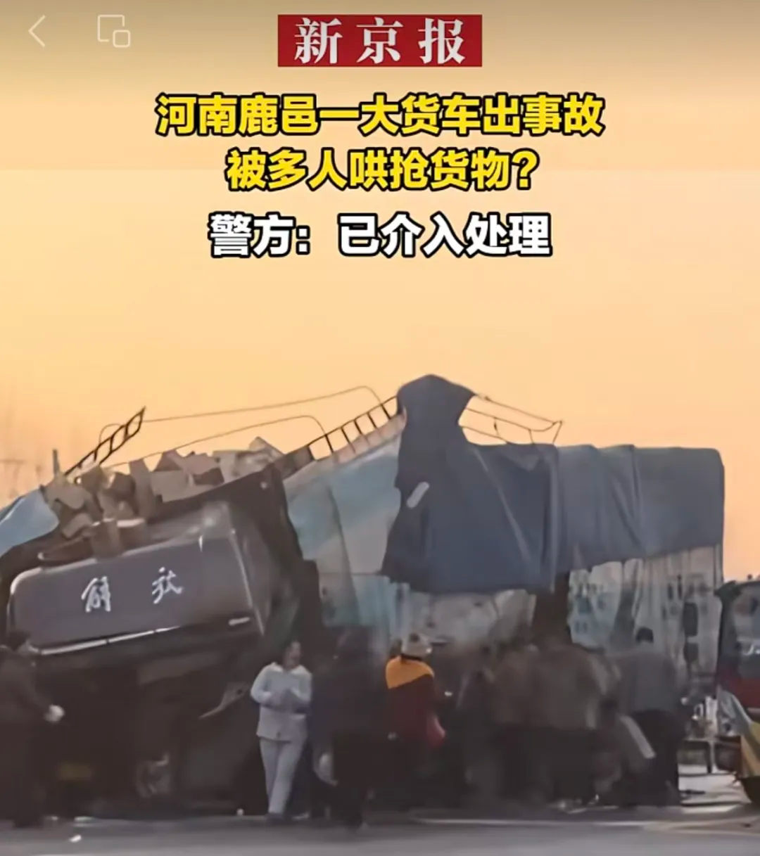 12月25日,一则“大货车出事故多人哄抢货物”的视频在网络流传。视频显示,一辆大货车出事故,车内的货物散落于货车周围,有部分人员搬运货物离开,现场有人大喊“别抢了”。随后,“@新京报”介入报道称,事发地为河南省周口市鹿邑县一路口。鹿邑县110指挥中心工作人员表示,公安机关已介入处理。此事引发关注后,多数网民谴责“搬走货物”的行径,认为是“趁火打劫”,呼吁警方严格执法。