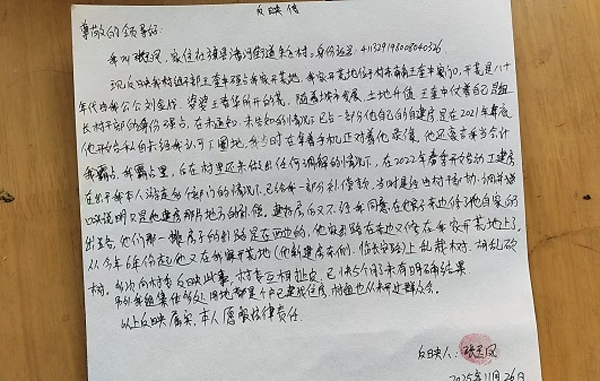 免责声明:本网内容经反映人核对无误,其对内容真实性负责。本文呼吁目的在于引起当地相关职能部门重视,依法依规调查、处理、调解,有效维护当地群众团结和谐。