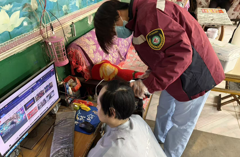王奶奶患有严重的类风湿关节炎,手指变形,生活难以自理。她的子女常年在外打工,照顾老人的担子,压得她喘不过气。近一年来,刘猛带着团队每周上门两次,不仅为老人做关节理疗缓解疼痛,指导科学用药,还常常帮老人修剪指甲、梳理头发。每次子女回家,看到母亲身上干净整洁,精神状态一天比一天好,心中的感激溢于言表。