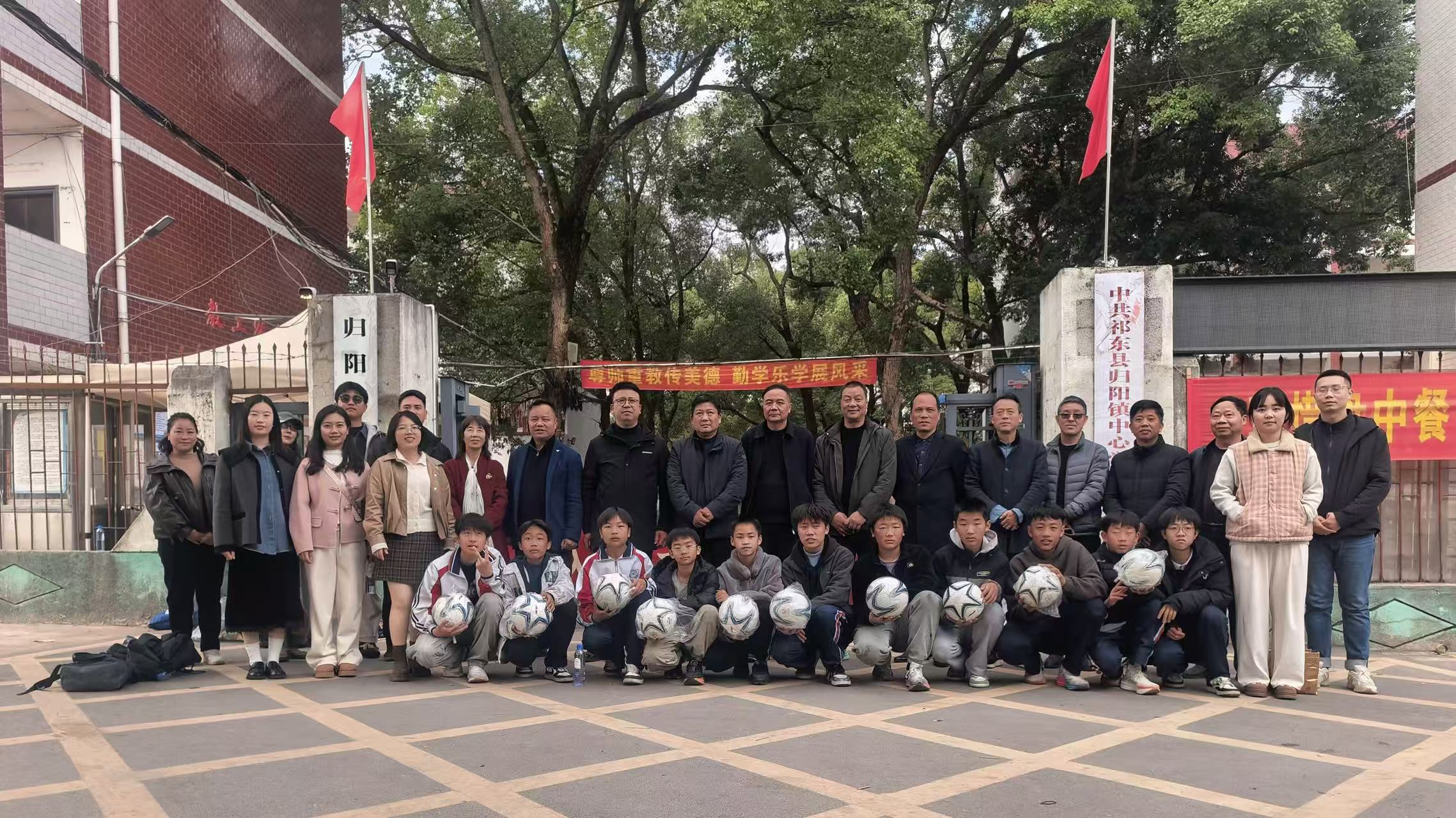 清晨,简朴而温馨的足球捐赠仪式拉开了活动序幕。衡阳市第七中学副校长朱礼华代表学校,将崭新的专业训练足球交到归阳镇中学校长廖志刚手中。